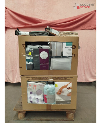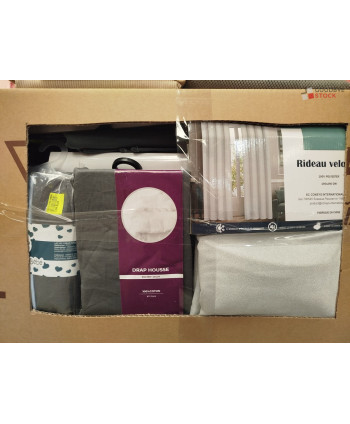 Lot de 60 pièces de linge de maison et linge de lit comprenant: des draps, des protèges matelas, des rideaux...etc