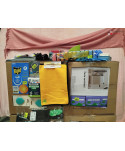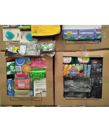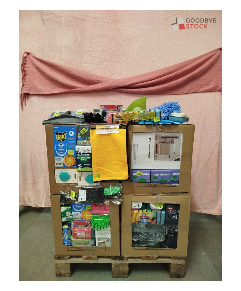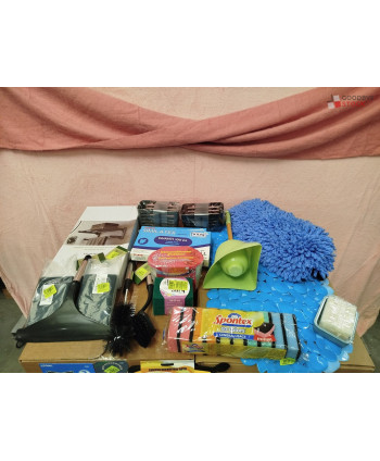 Lot de 4 cartons de produits et accessoires d'entretien ménager comprenant: des porte serviettes, des savons détachant, des éponges