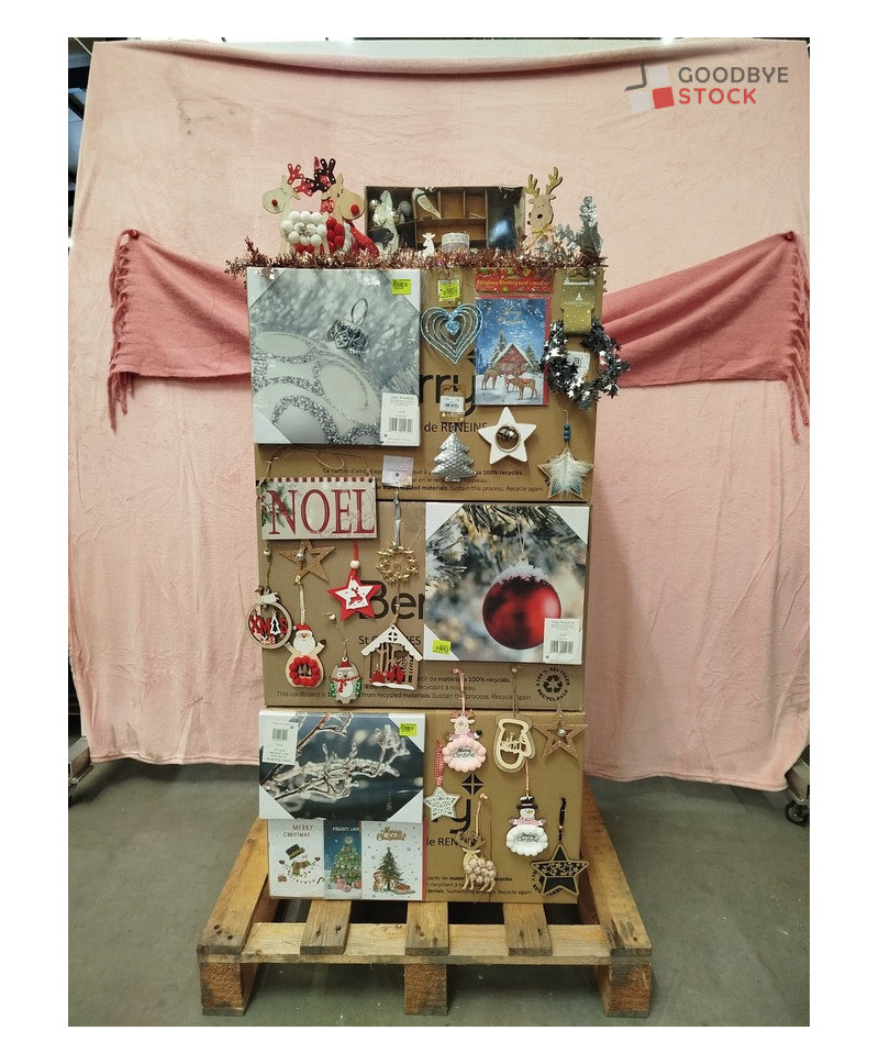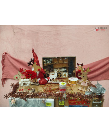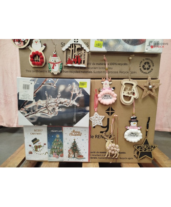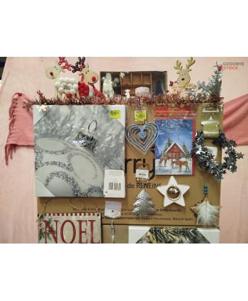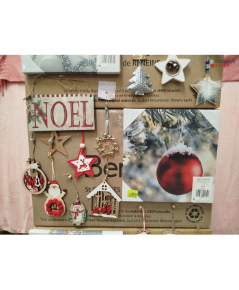 lot de 3 cartons de décorations de Noel comprenant: des sujets en bois, des tableaux, des guirlandes...etc