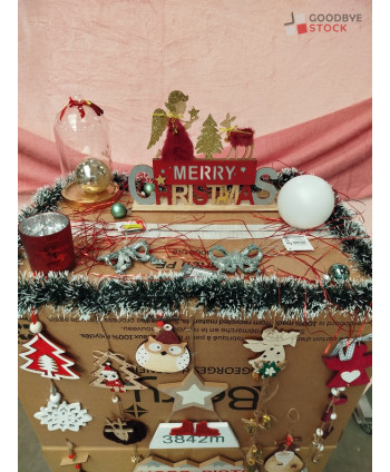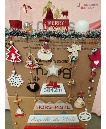 lot de 3 cartons de décorations de Noel comprenant: des sujets en bois, des cartes, des stickers, des serviettes, de la déco...etc