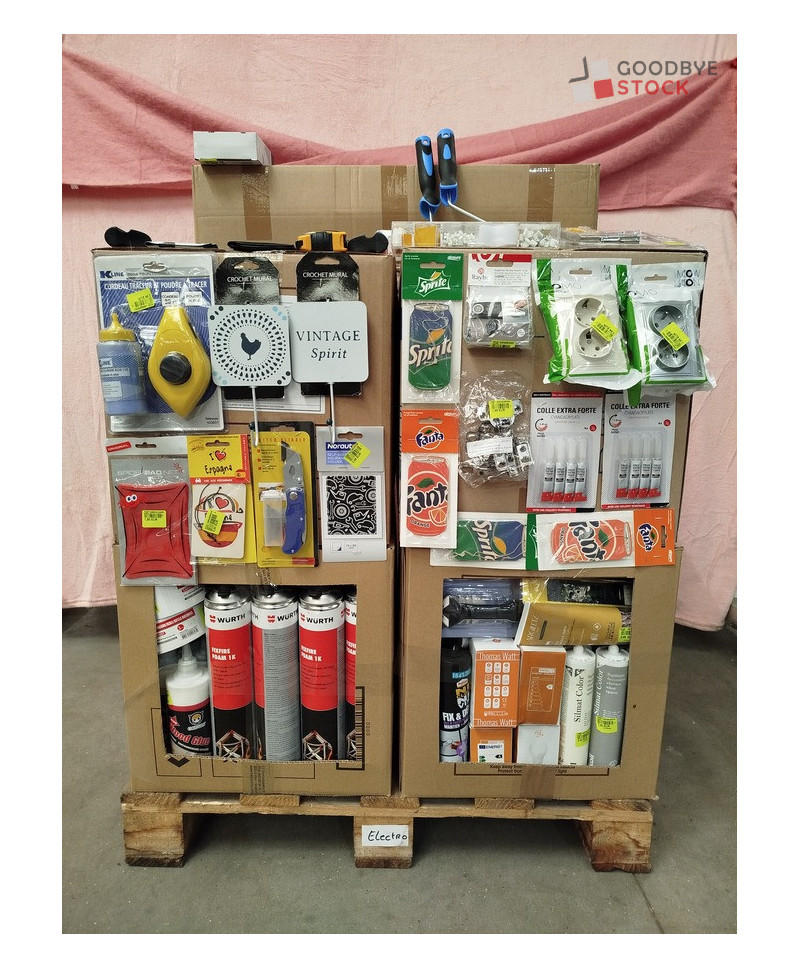 Lot de 4 cartons de bricolage comprenant : des prises, des outils, de la colle, des pinceaux, etc...