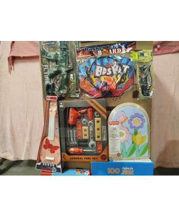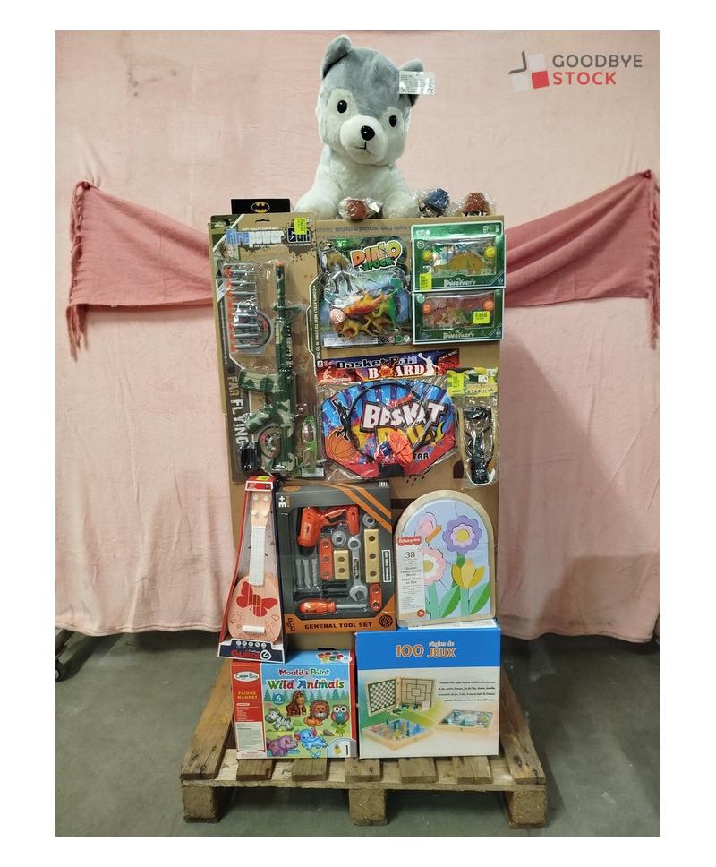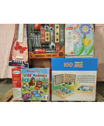 Lot de 100 jeux et jouets comprenant: des peluches, des jeux de construction, des animaux...etc