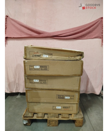 Lot de 5 tables basses - 43.5x43.5x65cm - Métal et verre - 3 coloris différents : 2 noires, 2 blanches, 1 grise