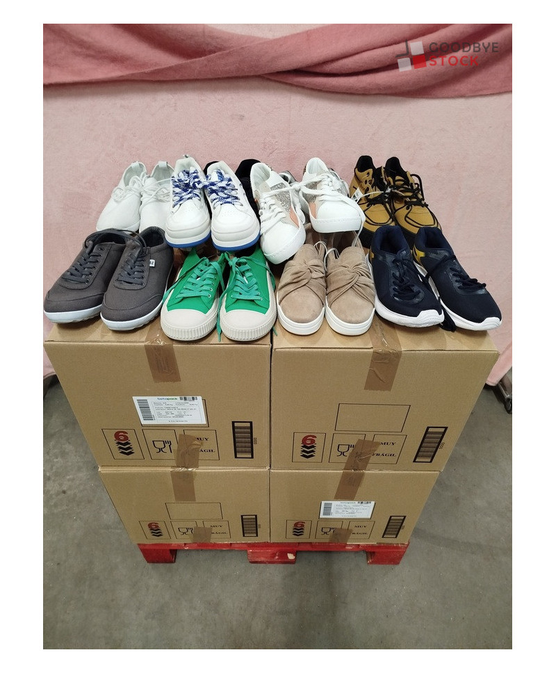 Lot de 70 paires de chaussures triées, différents modèles et différentes pointures