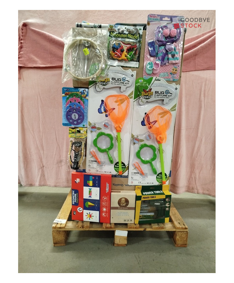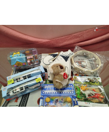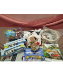Lot de 100 jeux et jouets comprenant: des véhicules miniatures, des jeux d'imitation, des puzzles, des peluches...etc