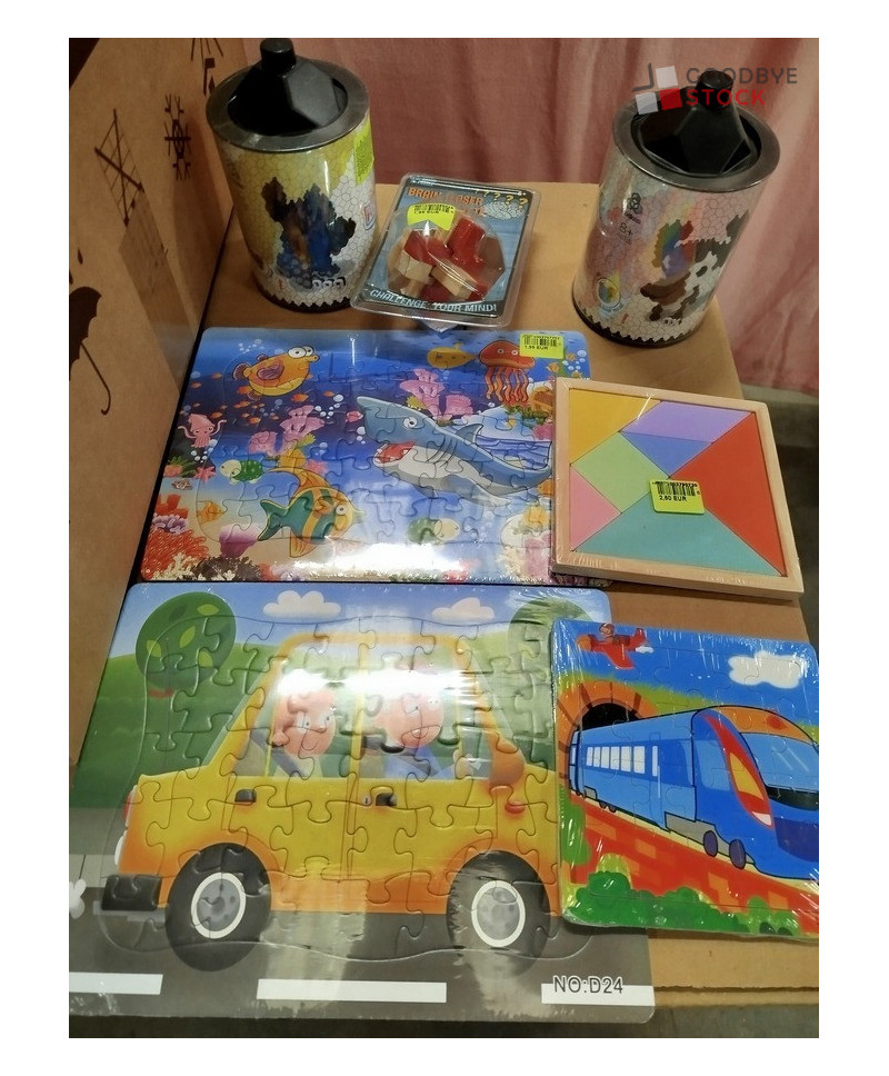 lot de 125 jeux et jouets comprenant des puzzles, des casses têtes, des jeux de construction