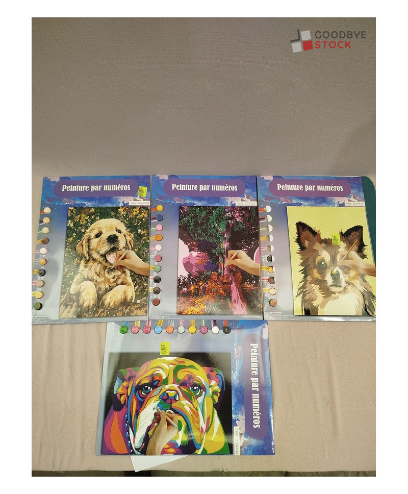 - Inclus: 1 pinceau en bois, peintures acryliques numérotées et pré mélangées, toile en coton tendue, feuillet de comparaison de la zone peinte, planche à dessin, fiche pratique avec instructions