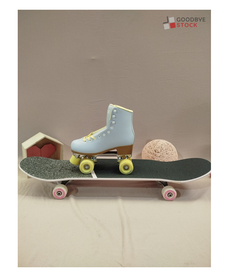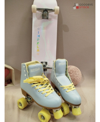 lot de 5 skates IMPALA Cosmos - rose et noir à paillettes + 3 paires de rollers IMPALA RollerSkates - 3x taille 40 - bleu et jaune