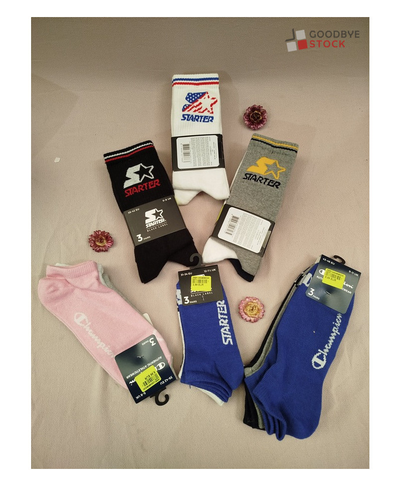 Lot de 200 paires de chaussettes de marque CHAMPION et STARTER - différentes tailles et différents modèles
