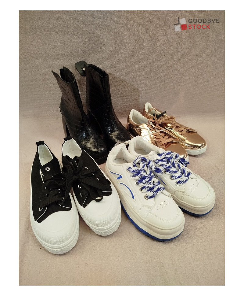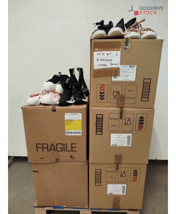Lot de 90 paires de chaussures triées, différents modèles et différentes pointures