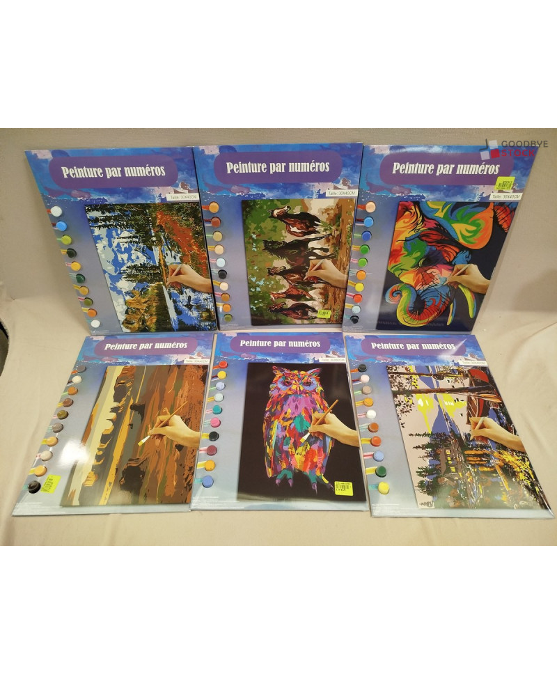 - Inclus: 1 pinceau en bois, peintures acryliques numérotées et pré mélangées, toile en coton tendue, feuillet de comparaison de la zone peinte, planche à dessin, fiche pratique avec instructions