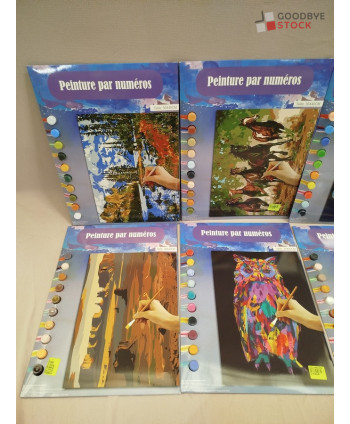 - Inclus: 1 pinceau en bois, peintures acryliques numérotées et pré mélangées, toile en coton tendue, feuillet de comparaison de la zone peinte, planche à dessin, fiche pratique avec instructions