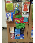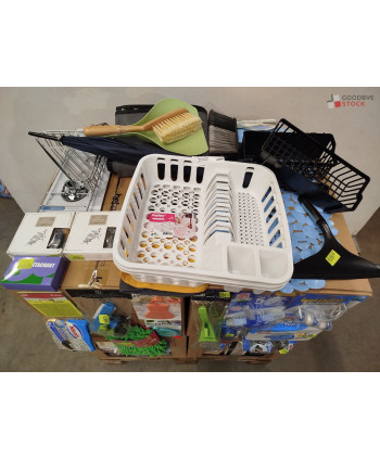 Lot de 4 cartons de produits et accessoires d'entretien ménager comprenant: des égouttoirs à vaisselle, du savon détachant, des éponges etc..