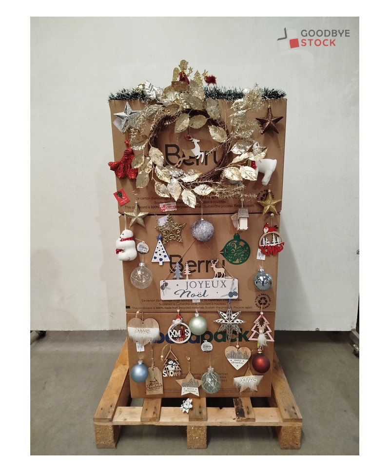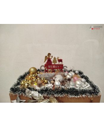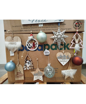 lot de 3 cartons de décorations de Noel comprenant: de la décoration en bois, des boules, des guirlandes...etc