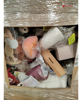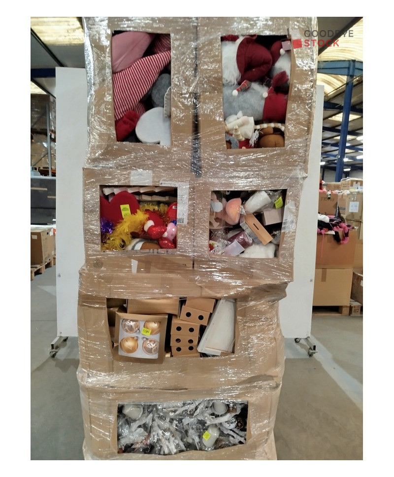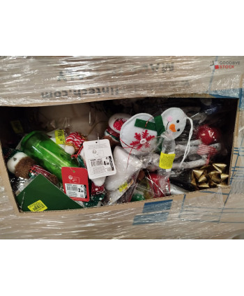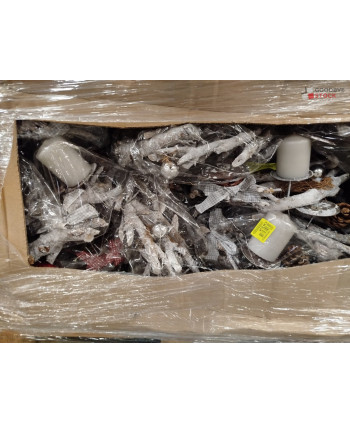 1 palette de Noel comprenant des couronnes de table, des paquets de boules, des rouleaux de ruban, des gnomes, des dérations diverses, des guirlandes, des boules en vrac...Etc - ce lot est non trié, il peut contenir quelques produits abimés