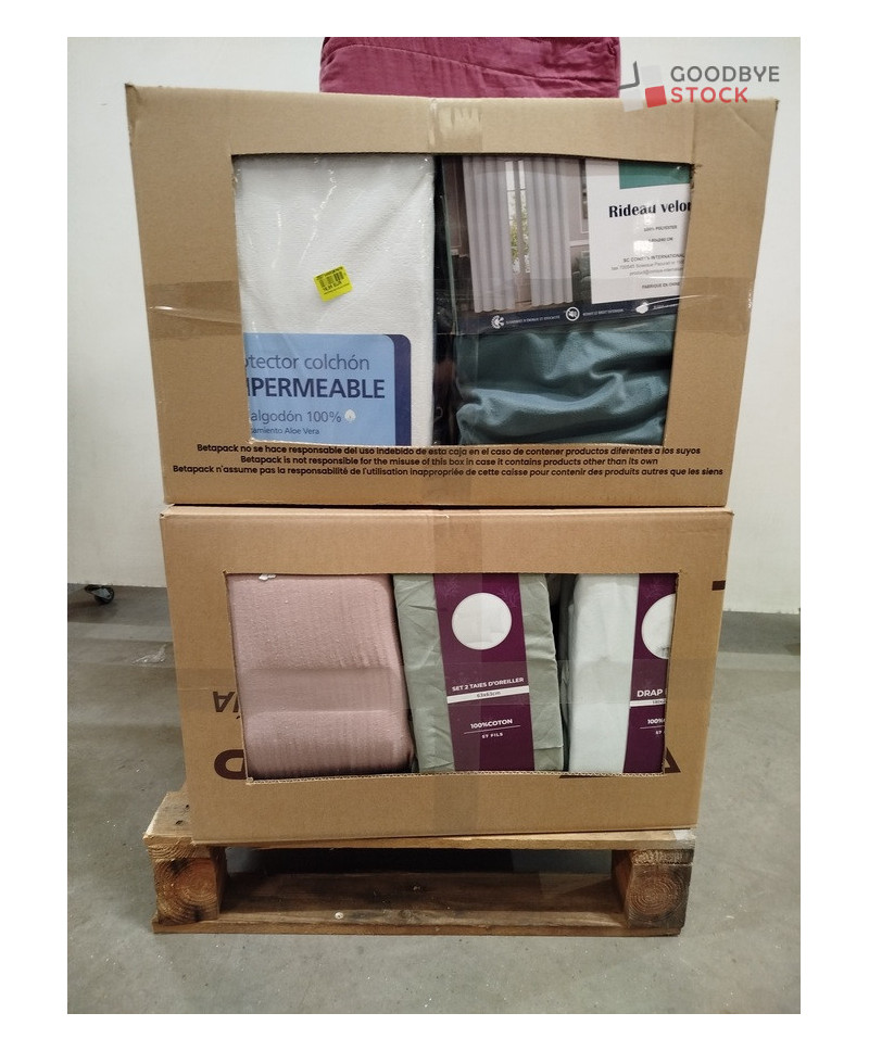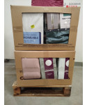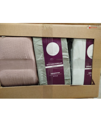 Lot de 60 pièces de linge de maison et linge de lit comprenant: des rideaux, des protèges matelas, des taies d'oreillers, des draps housses...Etc