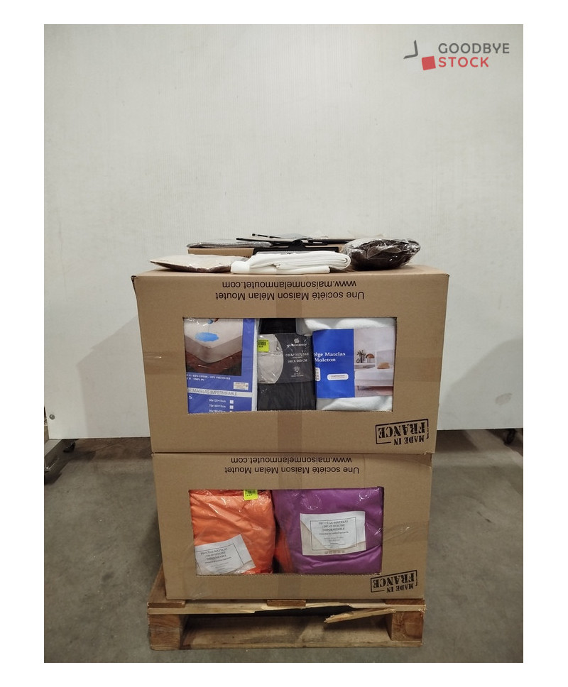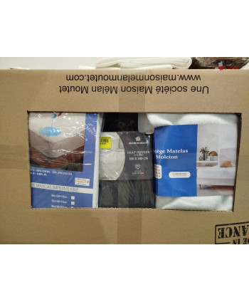 Lot de 60 pièces de linge de maison et linge de lit comprenant: des draps housses, des protéges matelas, des taies d'oreillers, des rideaux...Etc