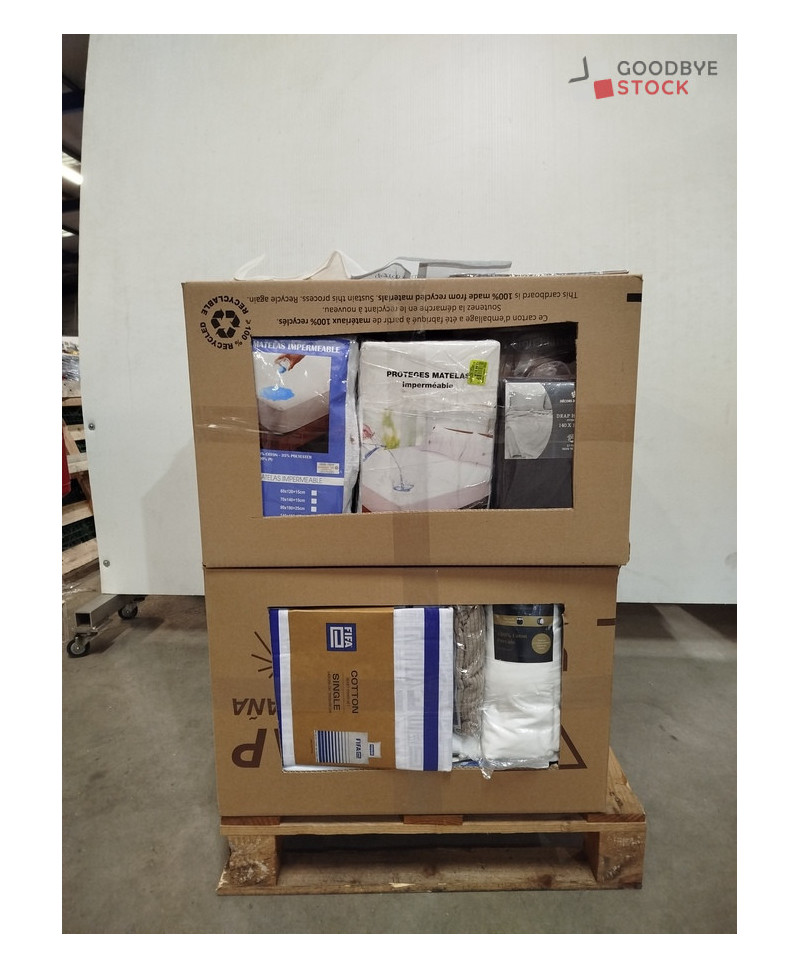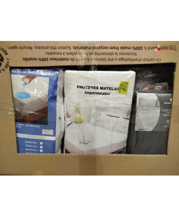 Lot de 60 pièces de linge de maison et linge de lit comprenant: des draps housses, des protéges matelas, des taies d'oreillers, des rideaux...Etc