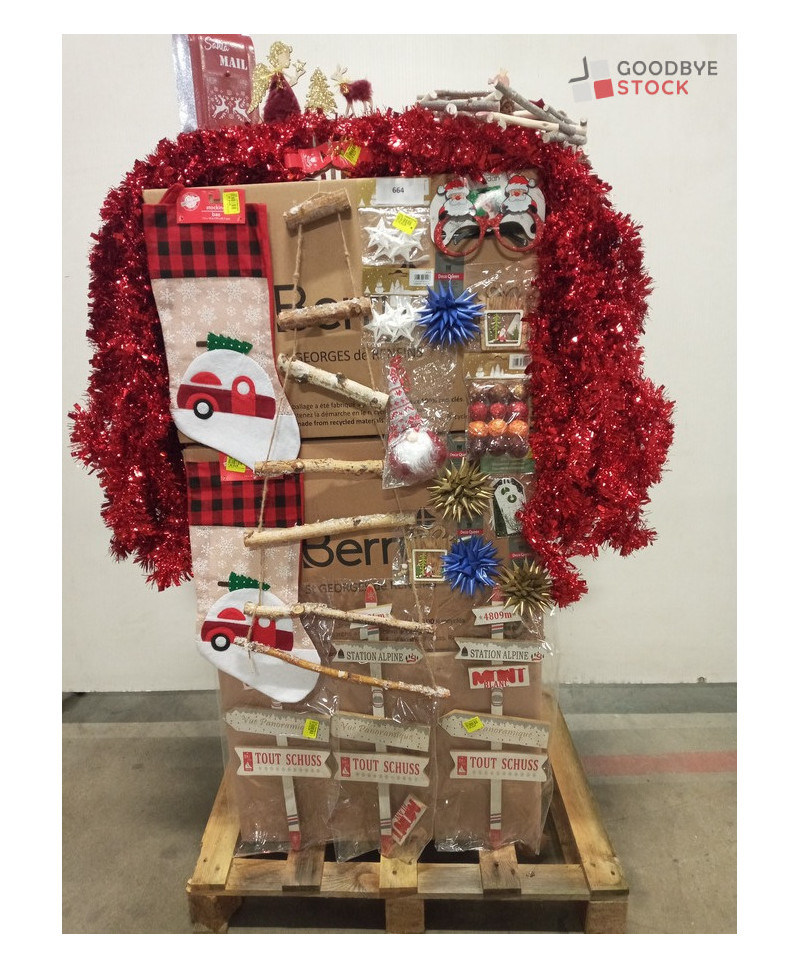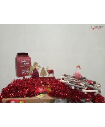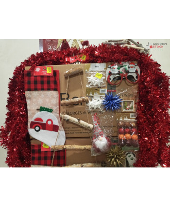 lot de 3 cartons de décoration de Noël comprenant: des guirlandes, des couronnes de table, des chaussettes à suspendre etc..