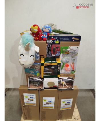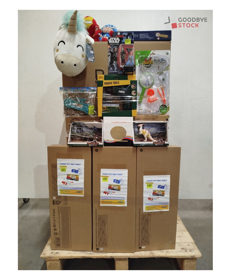 Lot de 100 jeux et jouets comprenant: des pistolets NERF, des figurines, des peluches, des jeux d'imitation...Etc