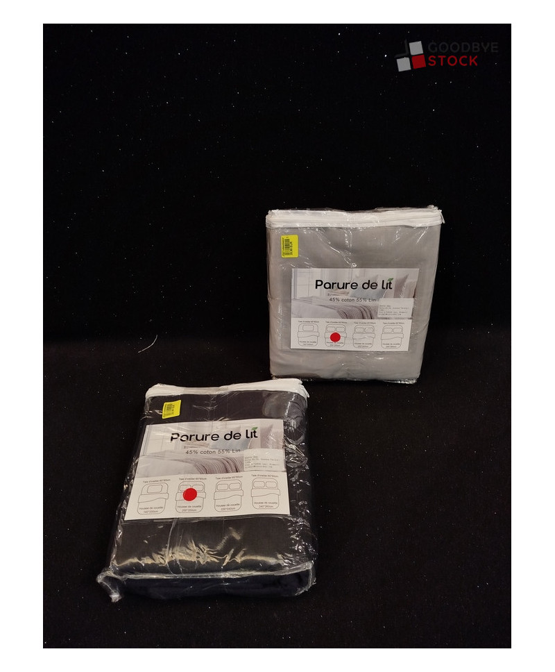 lot de 6 parures de lit - 140*200 cm - 45% coton, 55% lin - taie d'oreiller 65*65 cm - 3 modèles noir, 3 modèles gris