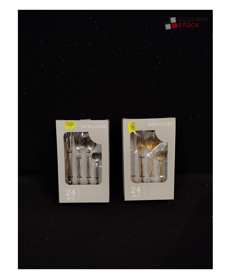lot de 12 ménagère 24 pièces - 5 dorées, 7 argentées