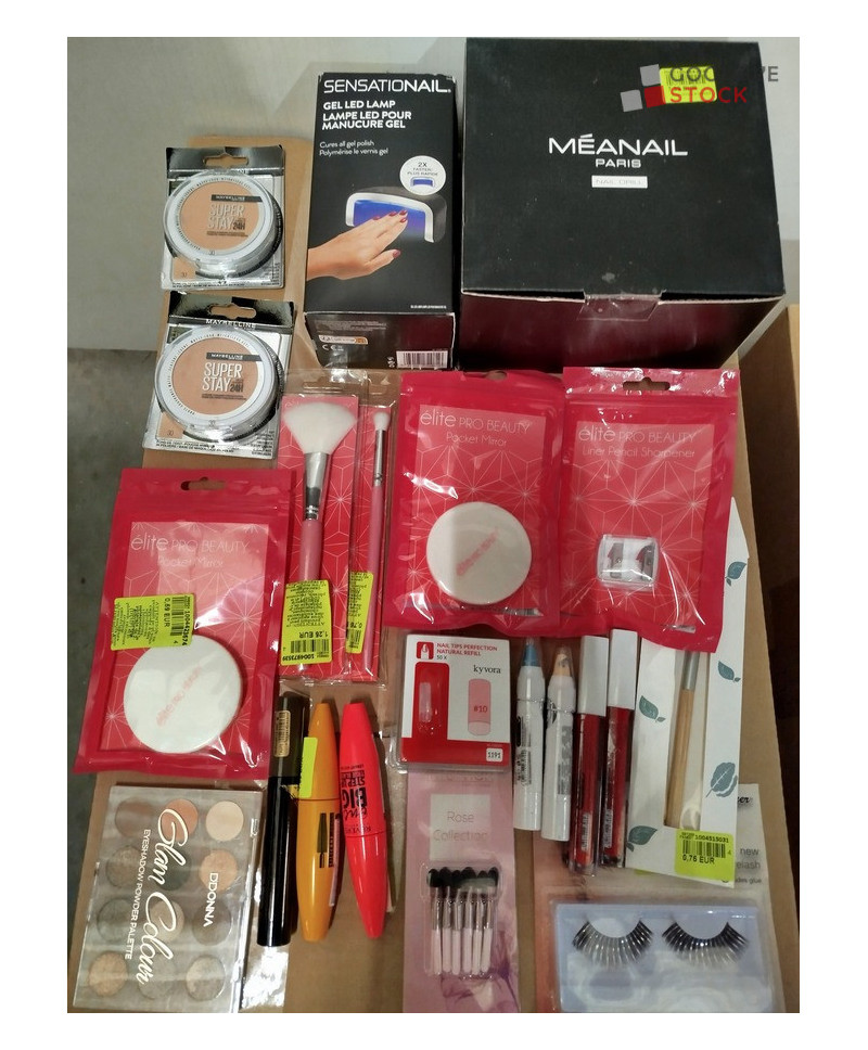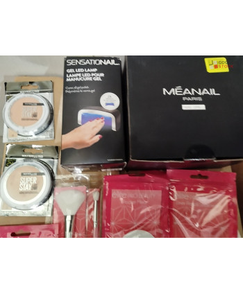 lot de 500 produits de cosmétiques comprenant des accessoires, du vernis à ongles, des faux ongles, des crayons...etc