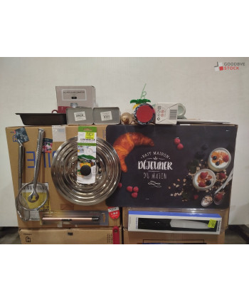 lot de 4 cartons de vaisselle et articles de cuisine comprenant: des mugs, des bocaux, des sets de table, des gourdes, des assiettes etc..