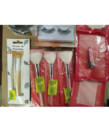 lot de 500 produits de cosmétiques comprenant des pinceaux à maquillage, des faux cils, des faux ongles ...etc