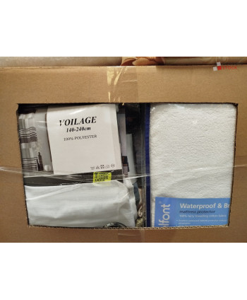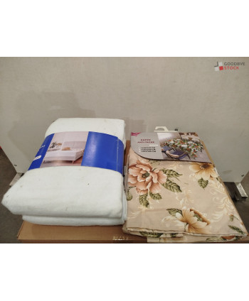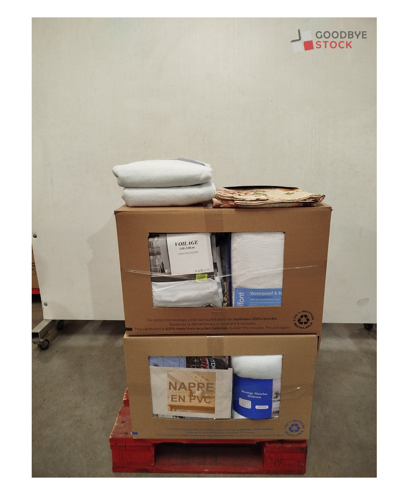 Lot de 60 pièces de linges de maison et linges de lit - linge emballés - comprenant : des nappes, des voilages, des protèges matelas