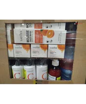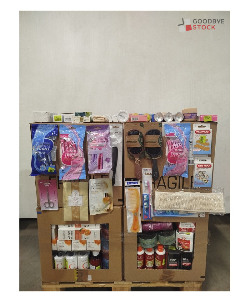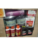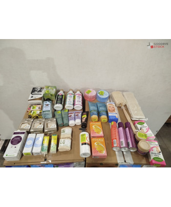 Lot de 4 cartons de produits d'hygiène corporelle comprenant : des rasoirs, des gels douche, des brosses, des pansements, des soins, etc...