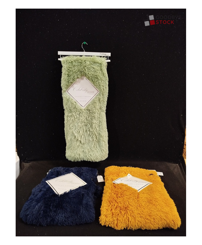 Lot de 25 plaids "CELEBRITY HOME" - plaids à poils longs en fausse fourrure - différents coloris - 127*152 cm - produits vendus sur cintre