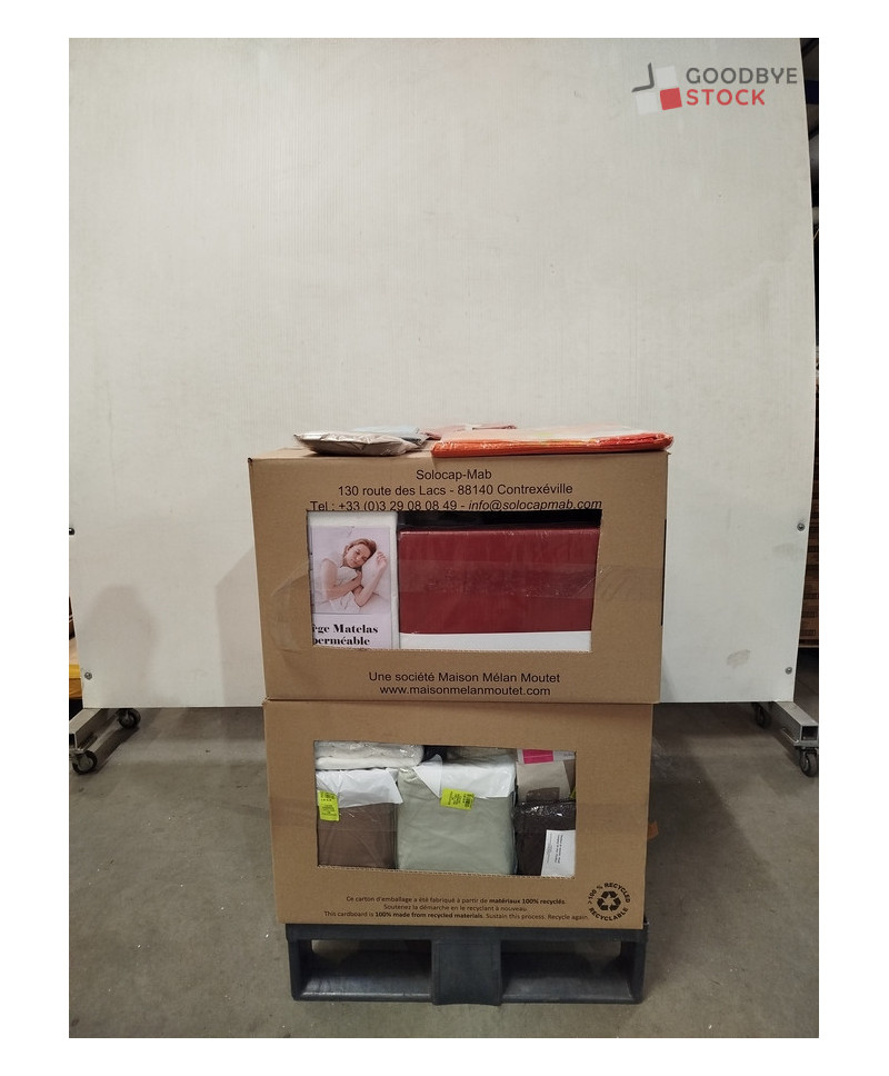 Lot de 60 pièces de linges de maison et linges de lit - linge emballés - comprenant : des protèges matelas, des draps, des taies d'oreiller etc..