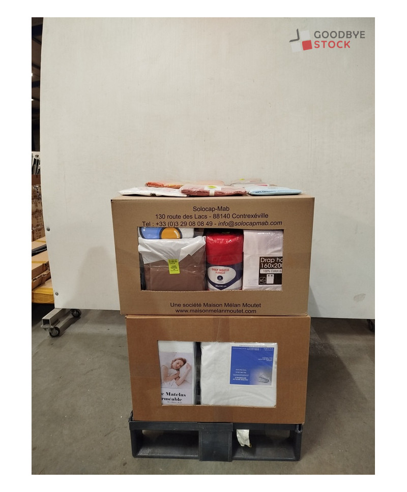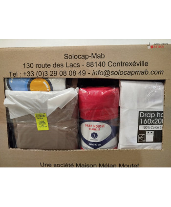 Lot de 60 pièces de linges de maison et linges de lit - linge emballés - comprenant : des draps housses, des taies d'oreiller, des protèges matelas etc...