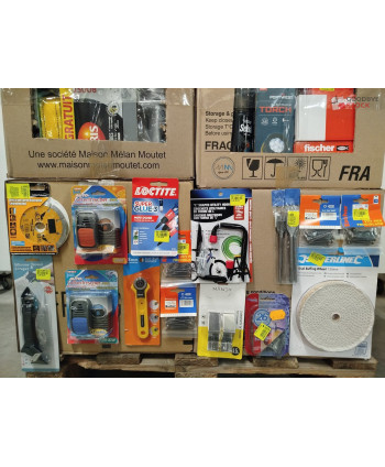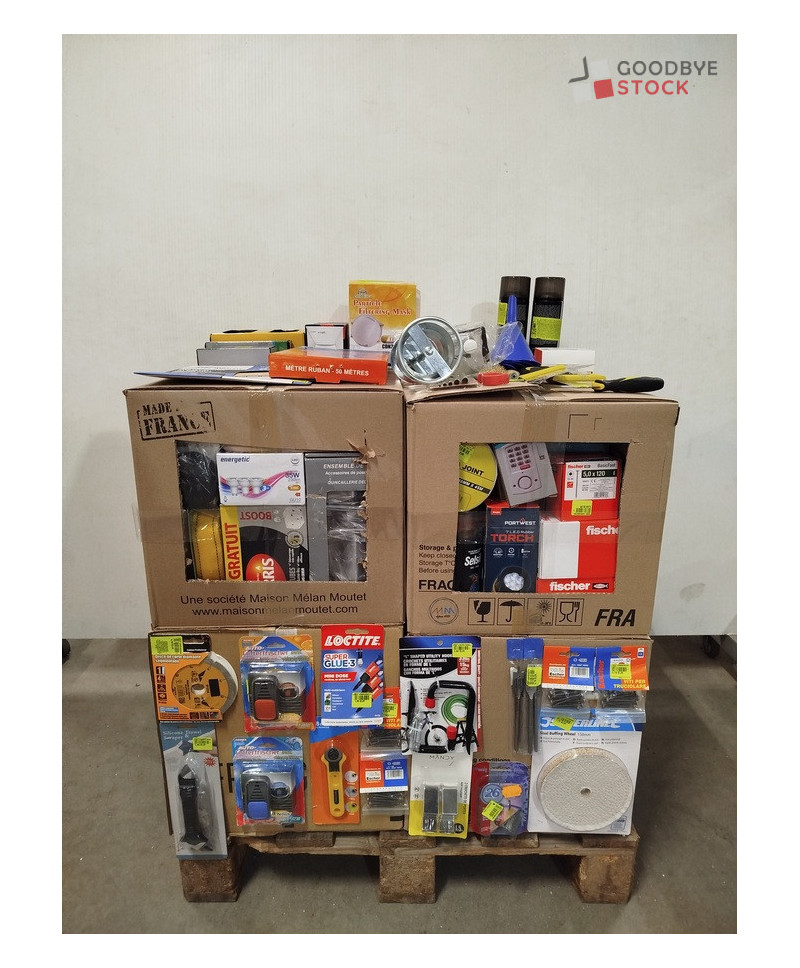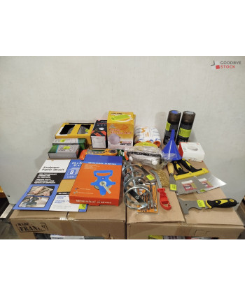 Lot de 4 cartons de bricolage comprenant : des ampoules, de la super glue, des désodorisant pour voiture etc..
