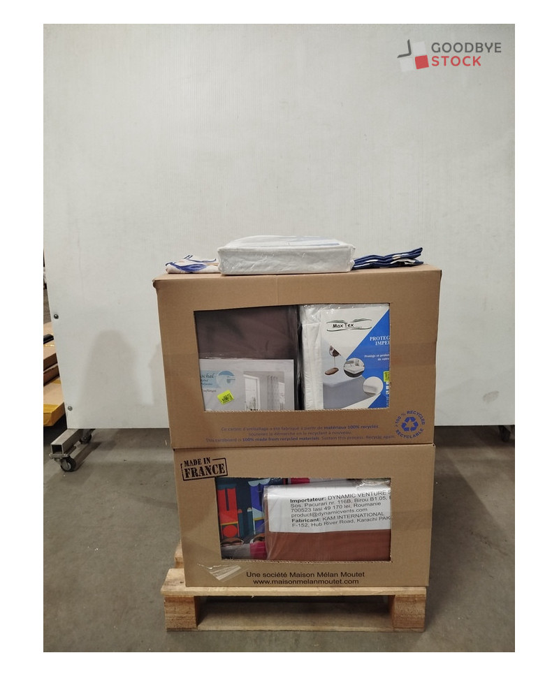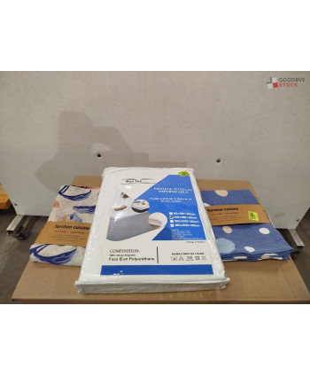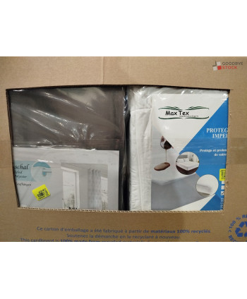 Lot de 60 pièces de linges de maison et linges de lit - linge emballés - comprenant : des protèges matelas, des torchons, des rideaux