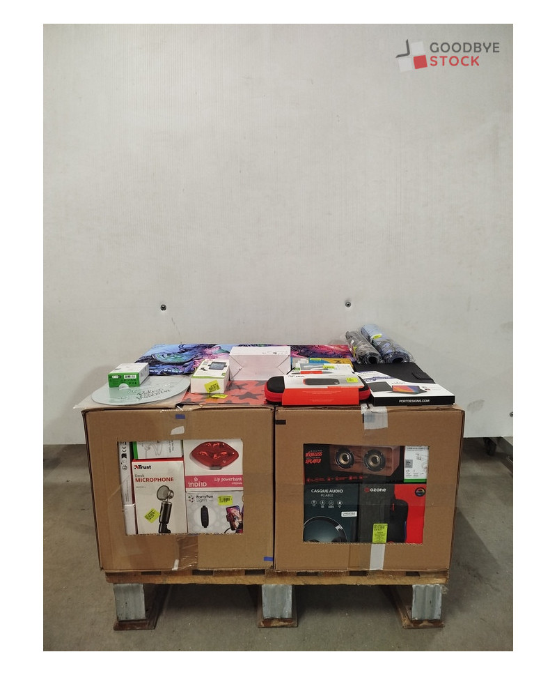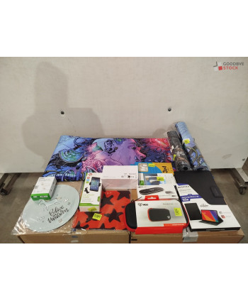 lot de 200 articles multimédia comprenant: des câbles, des tapis de souris, des étuis etc..