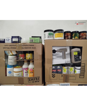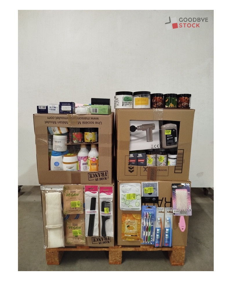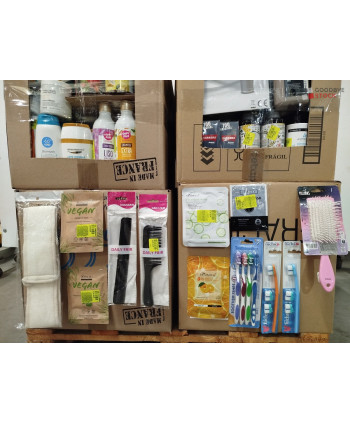 Lot de 4 cartons de produits d'hygiène corporelle comprenant : des crèmes pour le corps, des brosses, des crèmes dépilatoire etc..