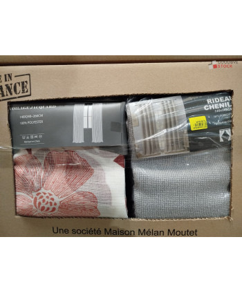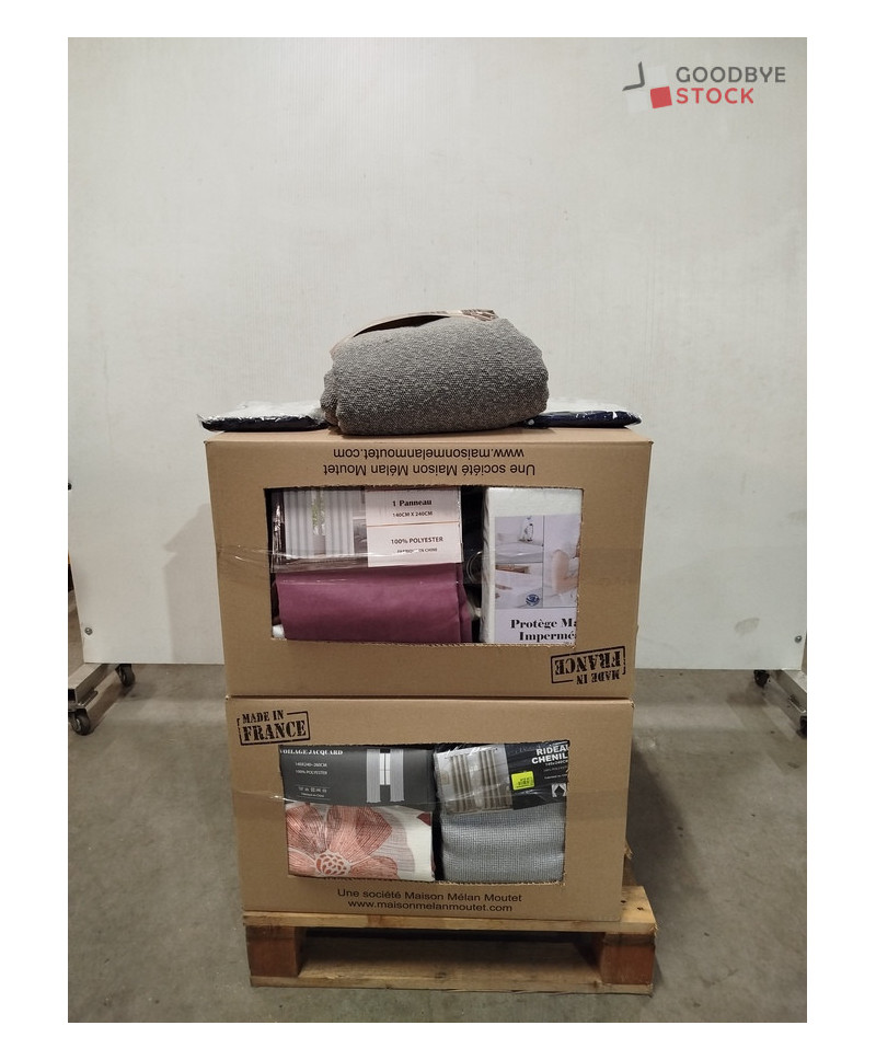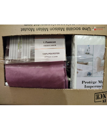 Lot de 60 pièces de linges de maison et linges de lit - linge emballés - comprenant : des rideaux, des housses de chaise, des draps etc..