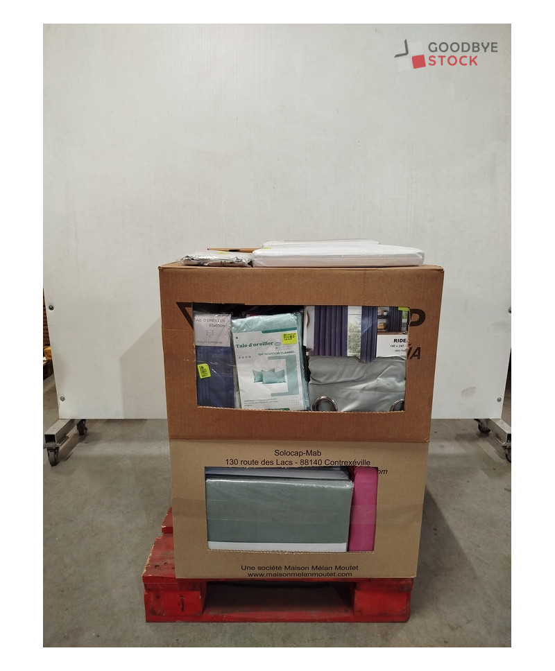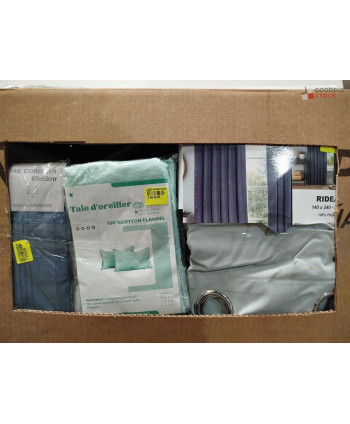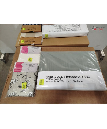 Lot de 60 pièces de linges de maison et linges de lit - linge emballés - comprenant : des parures de lit, des taies d'oreiller, des rideaux etc..