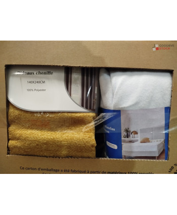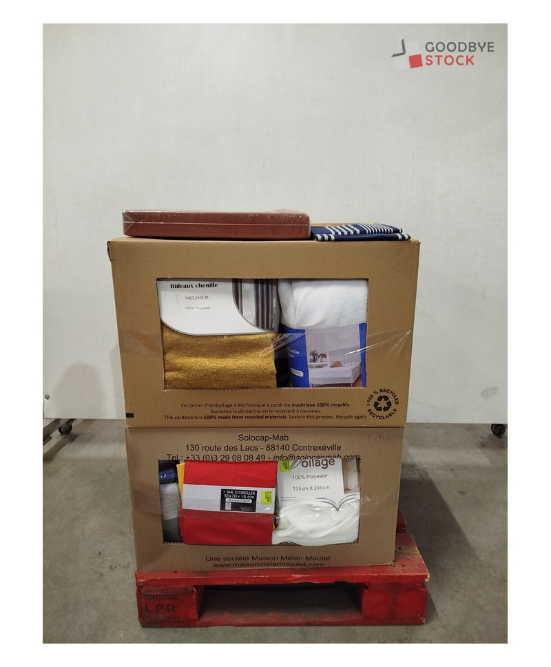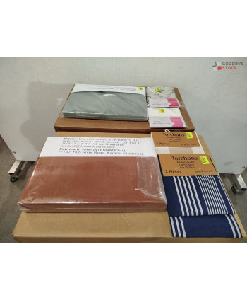 Lot de 60 pièces de linges de maison et linges de lit - linge emballés - comprenant : des parures de lit, des torchons, des rideaux etc..