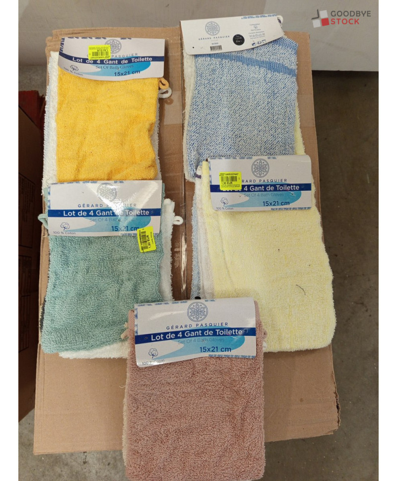 lot de 70 paquets de 4 gants de toilette - 15*21 cm - différents coloris - 100% coton