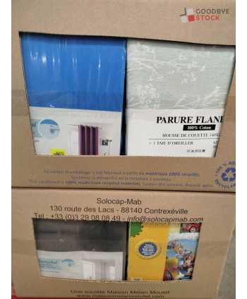 Lot de 60 pièces de linges de maison et linges de lit - linge emballés - comprenant : des parures de lit, des rideaux, des draps
