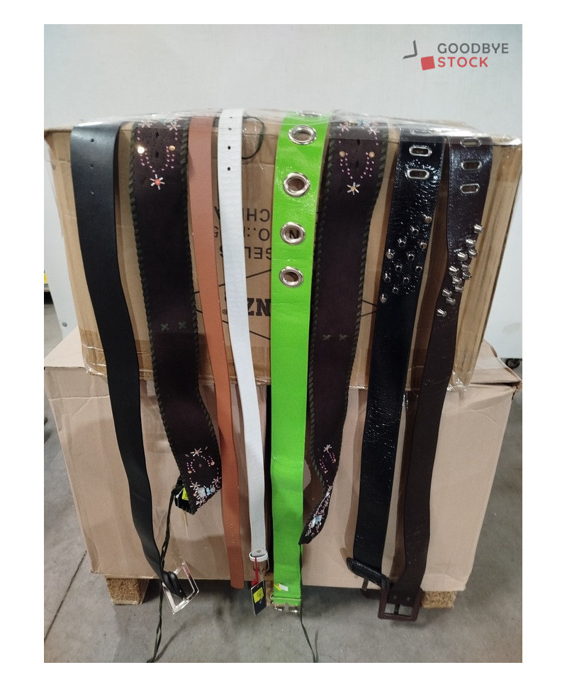 Lot de 300 ceintures pour femme et homme, de différents modèles et de différentes couleurs.