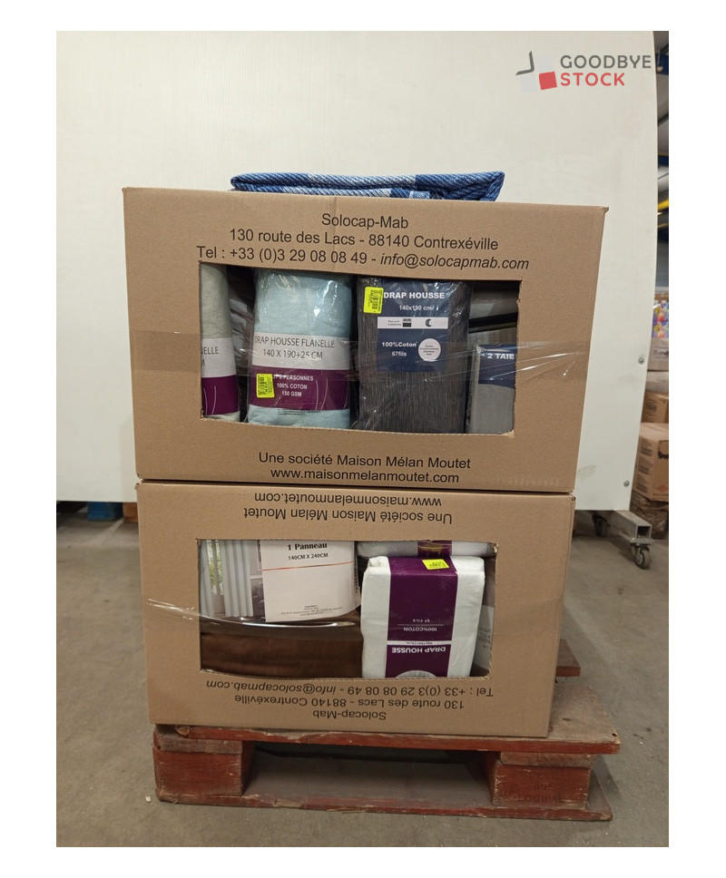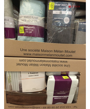 Lot de 60 pièces de linges de maison et linges de lit - linge emballés - comprenant : des draps, des parures de lit, des rideaux