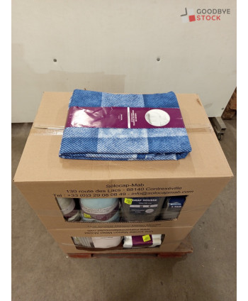 Lot de 60 pièces de linges de maison et linges de lit - linge emballés - comprenant : des parures de lit, des rideaux, des draps