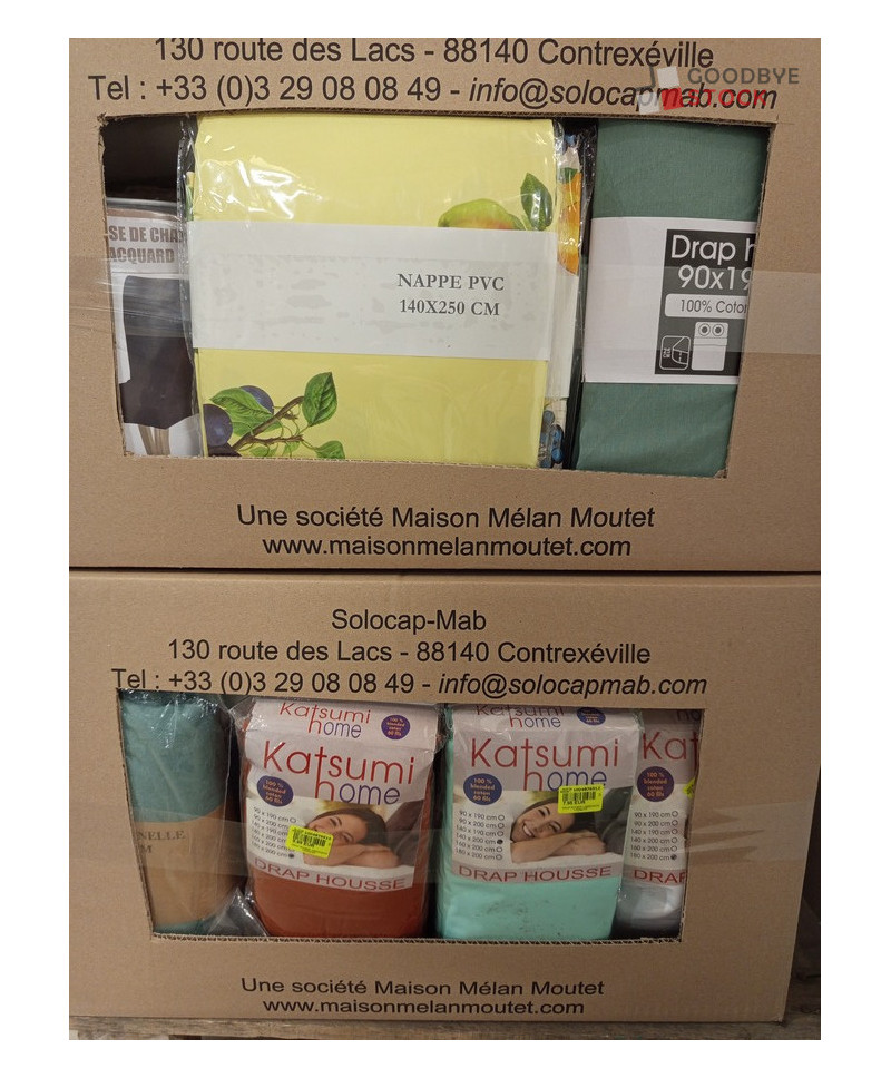 Lot de 60 pièces de linges de maison et linges de lit - linge emballés - comprenant : des nappes, des housses de couette, des rideaux, des draps housses...Etc