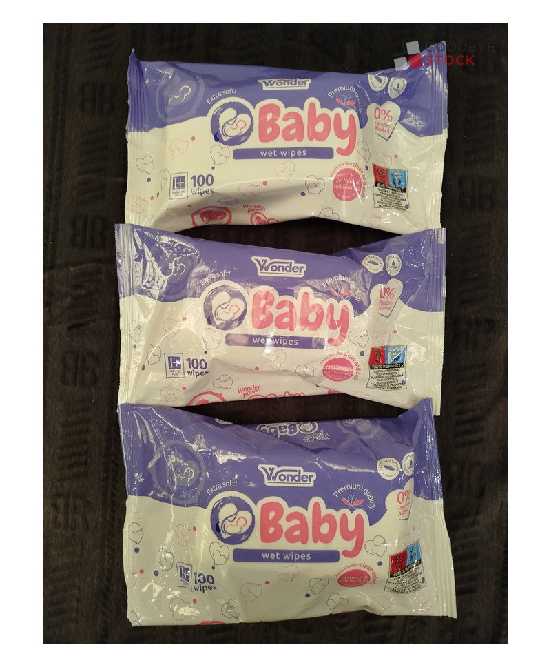 Lot de 80 paquets de lingettes pour bébés de la marque WONDER - 100 lingettes par paquet - DLUO : 12/08/2025