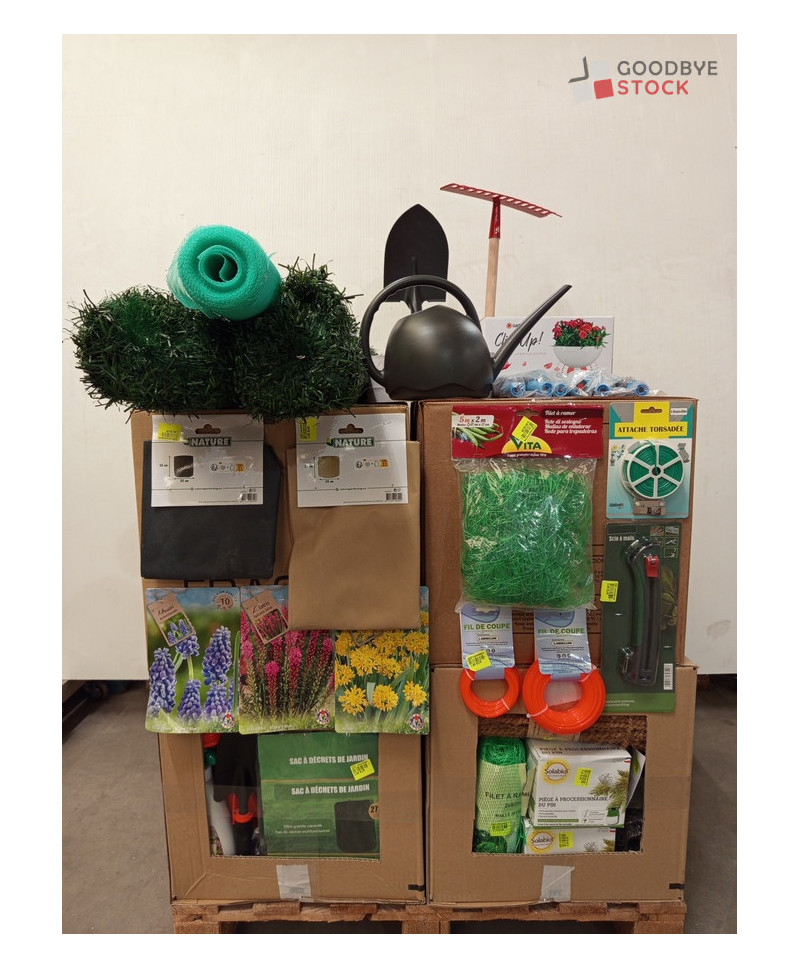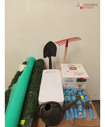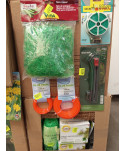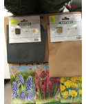 Lot de 200 accessoires et outils de jardinage comprenant : des graines de fleurs, des sacs en tissus, des filets à ramer, des attaches torsadées, des accessoires de tuyaux, etc...
