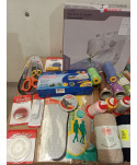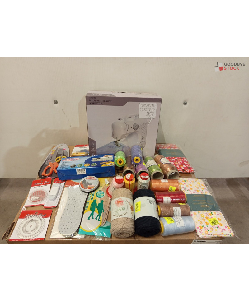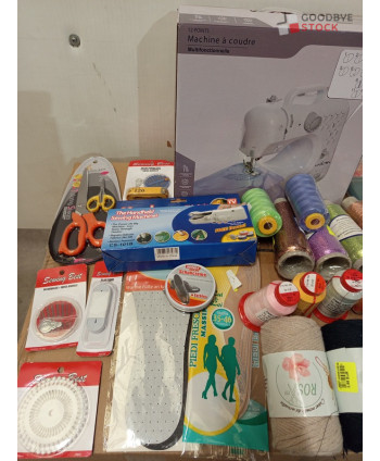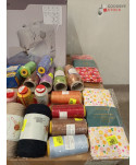Lot de 300 pièces de mercerie comprenant: comprenant des bobines de fils, 1 machine à coudre, des ciseaux, des aiguilles, des tissus, etc.